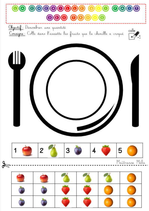 - L'assiette de la chenille : réaliser des collections de 1 à 5.